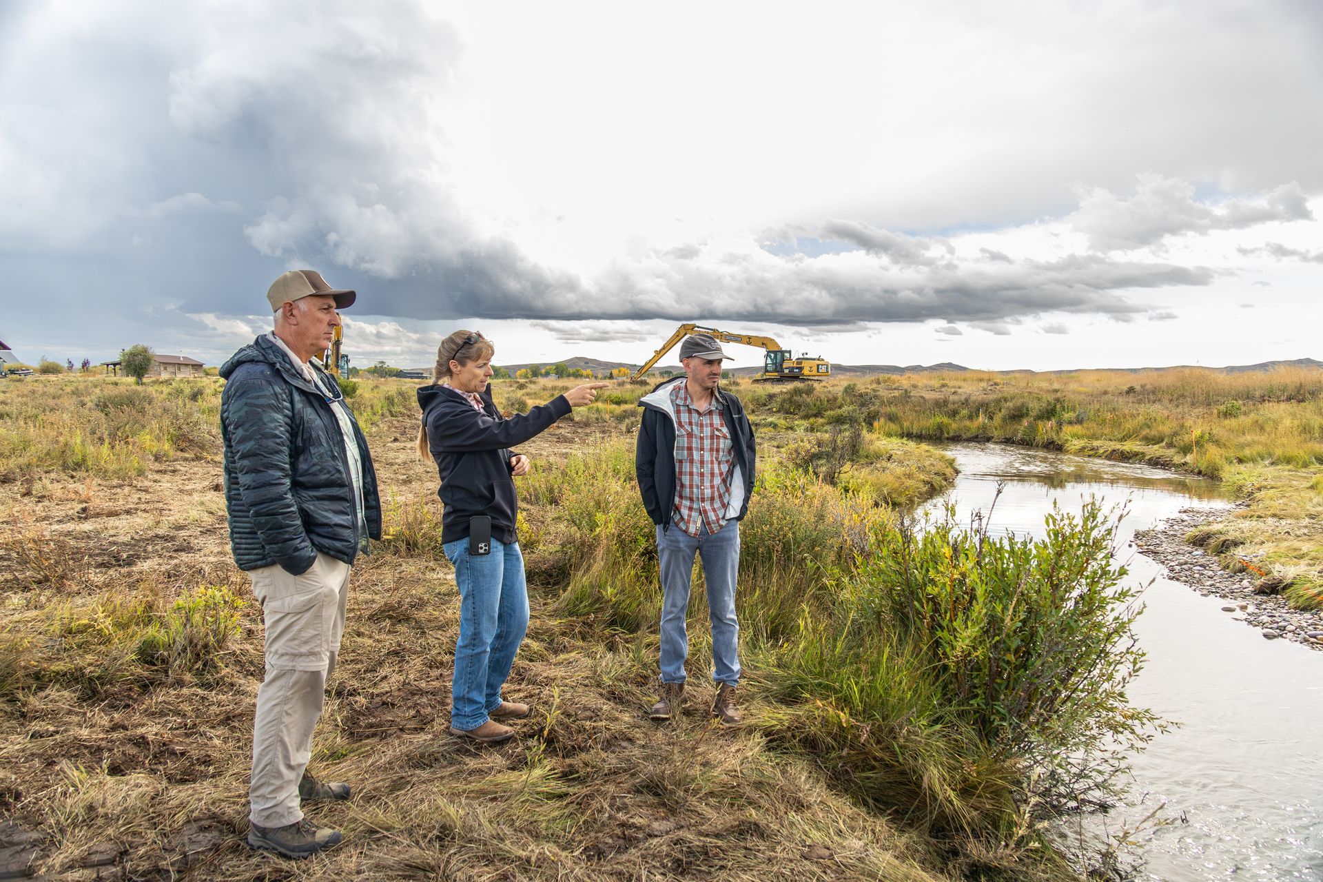 Jemas Ranch owner Jeff Aleixo and Tara Hicks survey the almost-completed stream restoration.